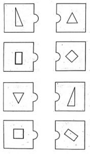 Q54. एक शिक्षक कक्षा III में निम्नलिखित कार्डों का वितरण करता है और बच्चों को समान आकृतियों का मिलान करने के लिए कहता है।